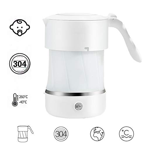 Wekyt Bouilloire lectrique Capacit DE 0,5 litres Enfant Bruit Reduction INOX Chauffage Rapide Pliante Rservoir Silicone pour Voyage Et Camping Space Kettle,White