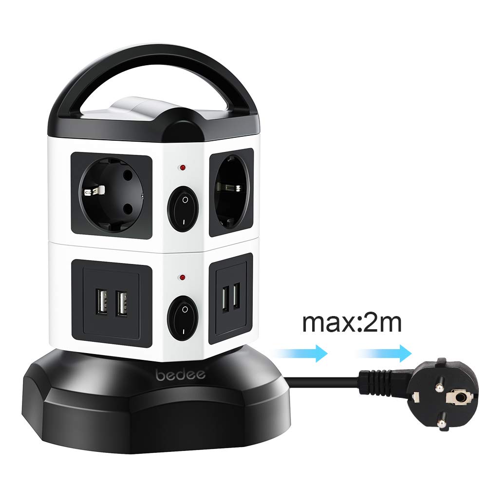 Multiprise Parafoudre et Surtension, Tour Multiprise, 6 Prises (2500W/10A) et 4 Ports de Charge USB (5 V / 2.1 A) avec Cordon de 2m, Multiprise USB Verticale avec Interrupteur pour iPhone iPad PSP