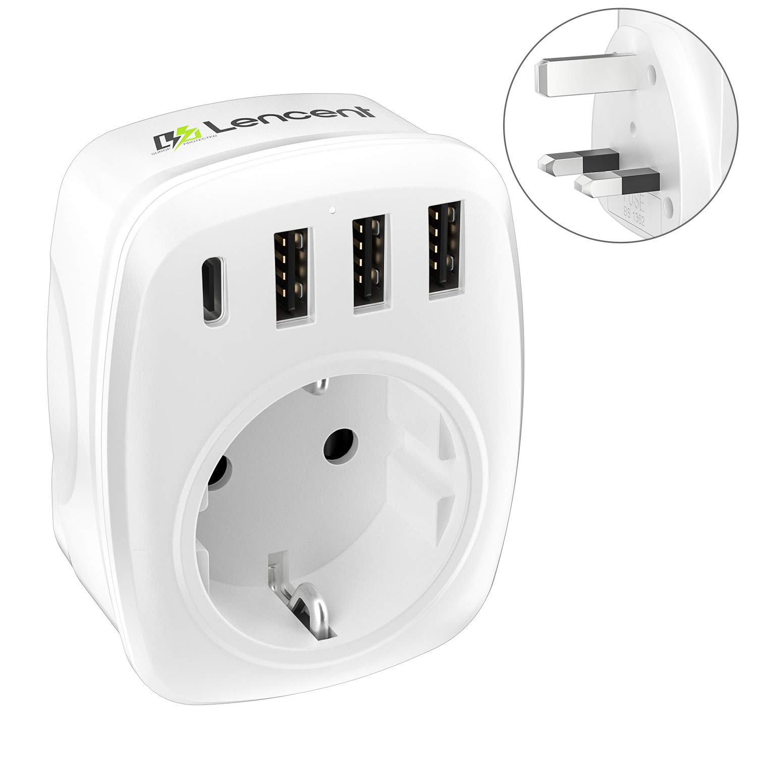 LENCENT Adaptateur Prise Anglaise UK Angleterre France Adaptateur de Voyage avec 3 USB et 1 Type-C, Europe Francaise FR 2 Broches vers GB 3 Broches pour Royaumeuni Irlande Bretagne Écosse (Type G)